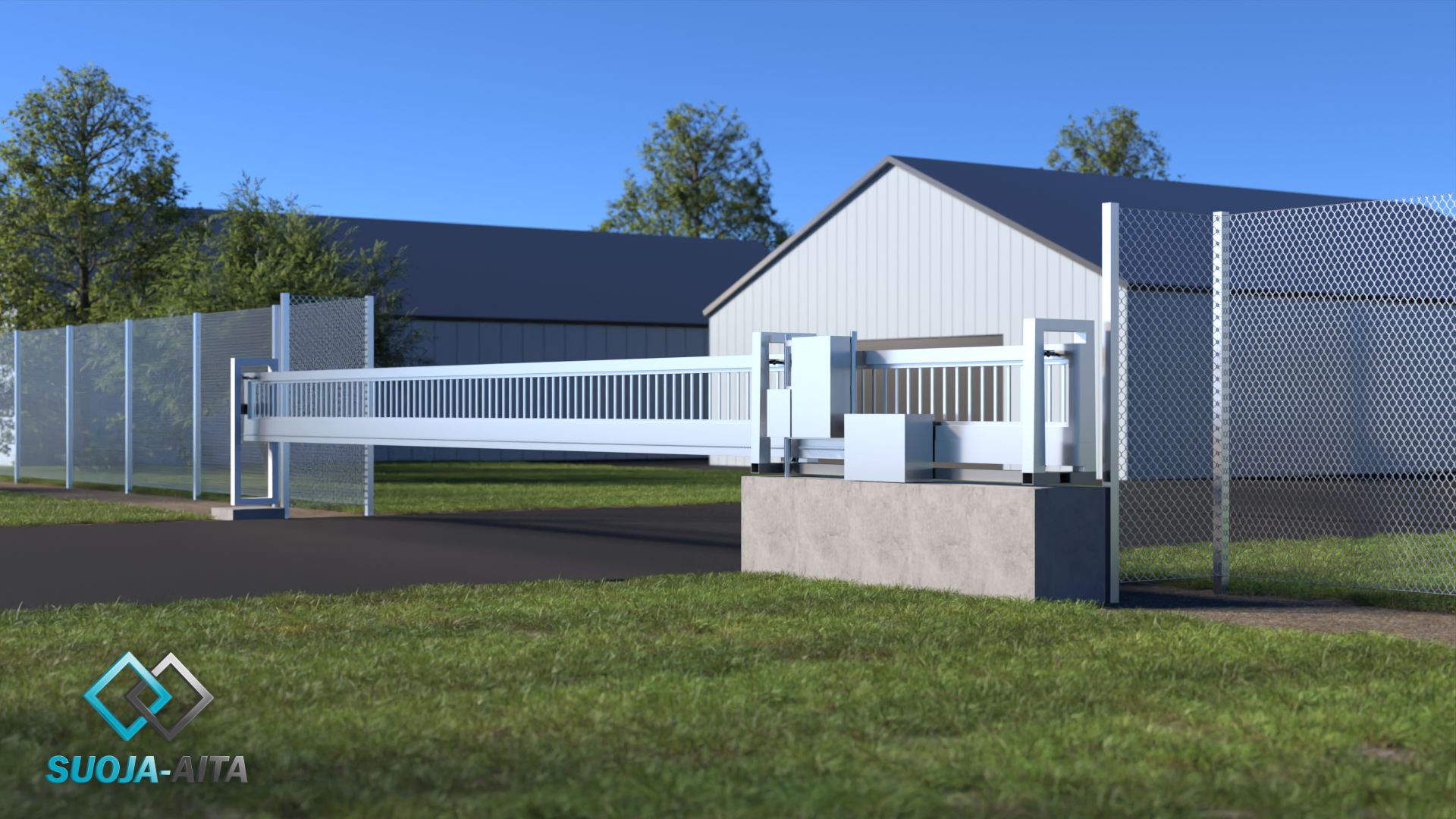 Tyylikäs ja varmatoiminen liukupuomi. Puomi soveltuu erinomaisesti panssariverkkoaidan ja kolmilanka-aidan rinnalle.